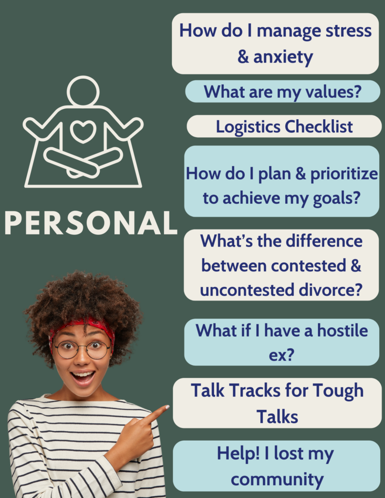 How do I manage stress and anxiety during this process? What are divorce stress symptoms? How do I stick to good routines, and what exactly are good routines? How do I create them, and what things will actually help me vs. what won’t? Where can I find the support I need when it feels like too much? 💡 LEARN ALL THE TIPS HERE 💡